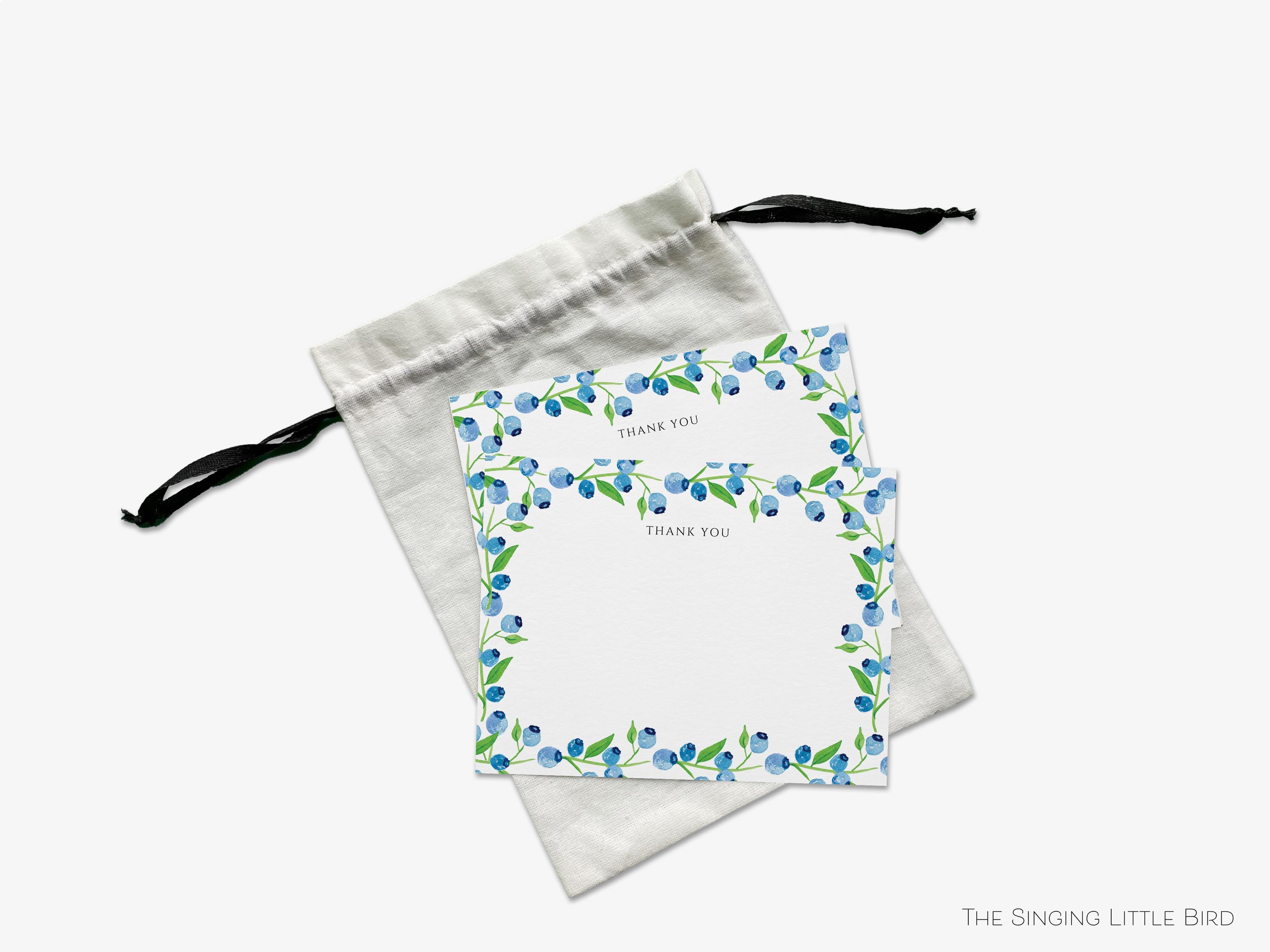 • Sets of Blueberry Personalized Flat Note Cards + White or Kraft Envelopes
