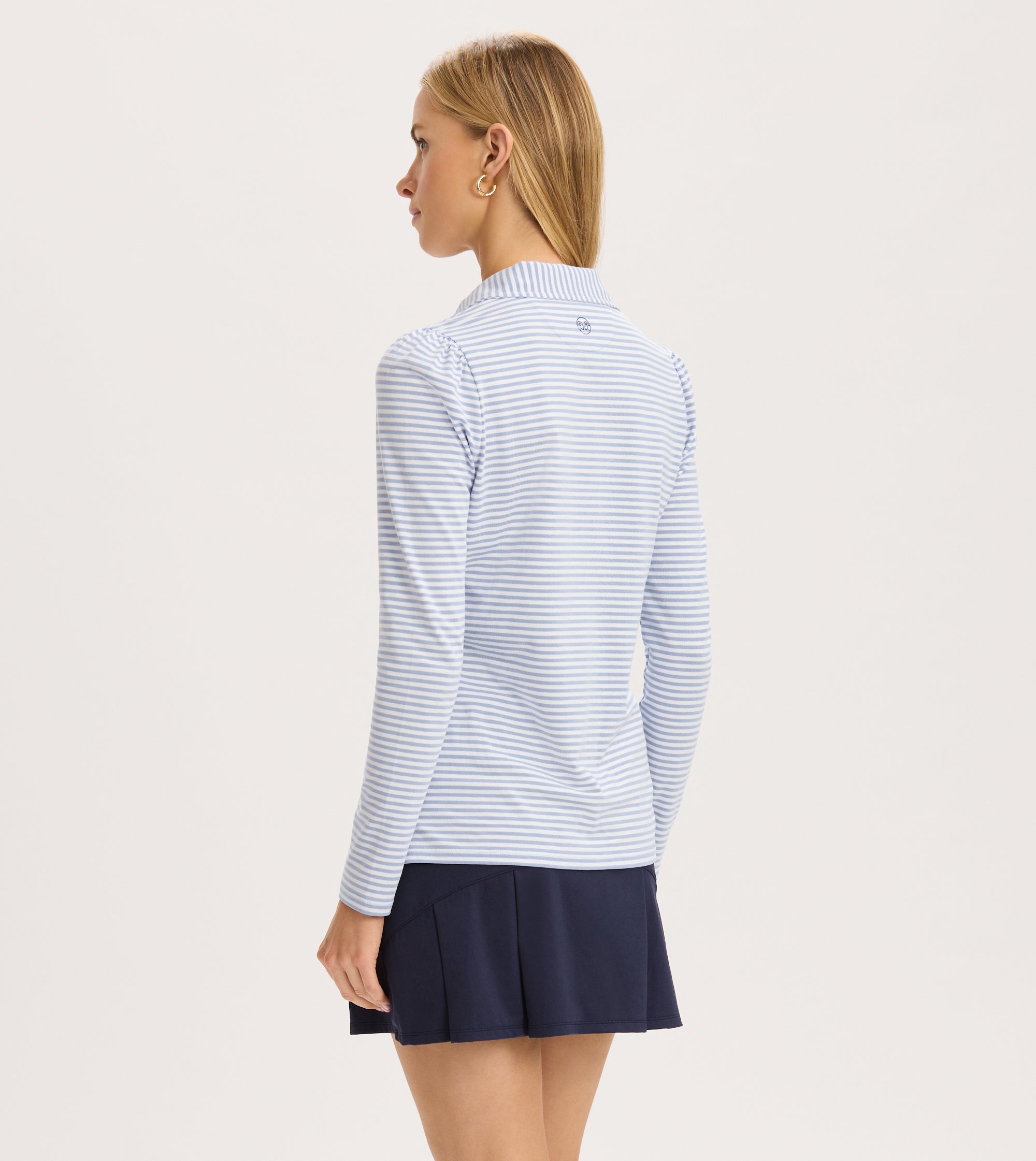 Long Sleeve Puff Sleeve Cotton Stripe Polo