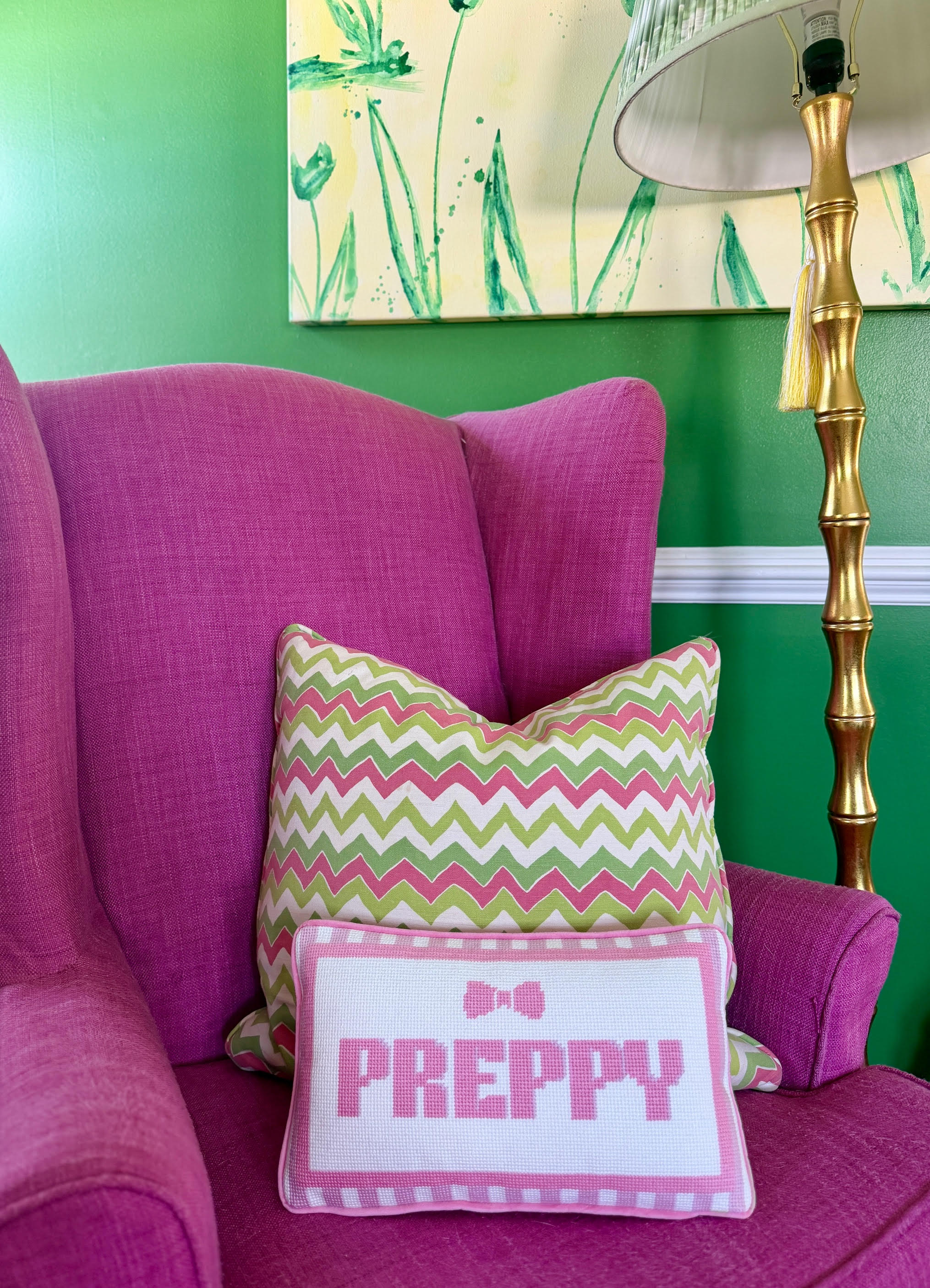 Inspired by our love for all things preppy, this needlepoint pillow was designed in collaboration with The Preppy Podcast. Featuring bright color palettes and detailed needlework, it’s stitched using high-quality silk-nylon thread for lasting beauty and durability. This pillow brings charm and personality to any space- perfect for hostess, birthday, or holiday gifting (or a little something just for you)!