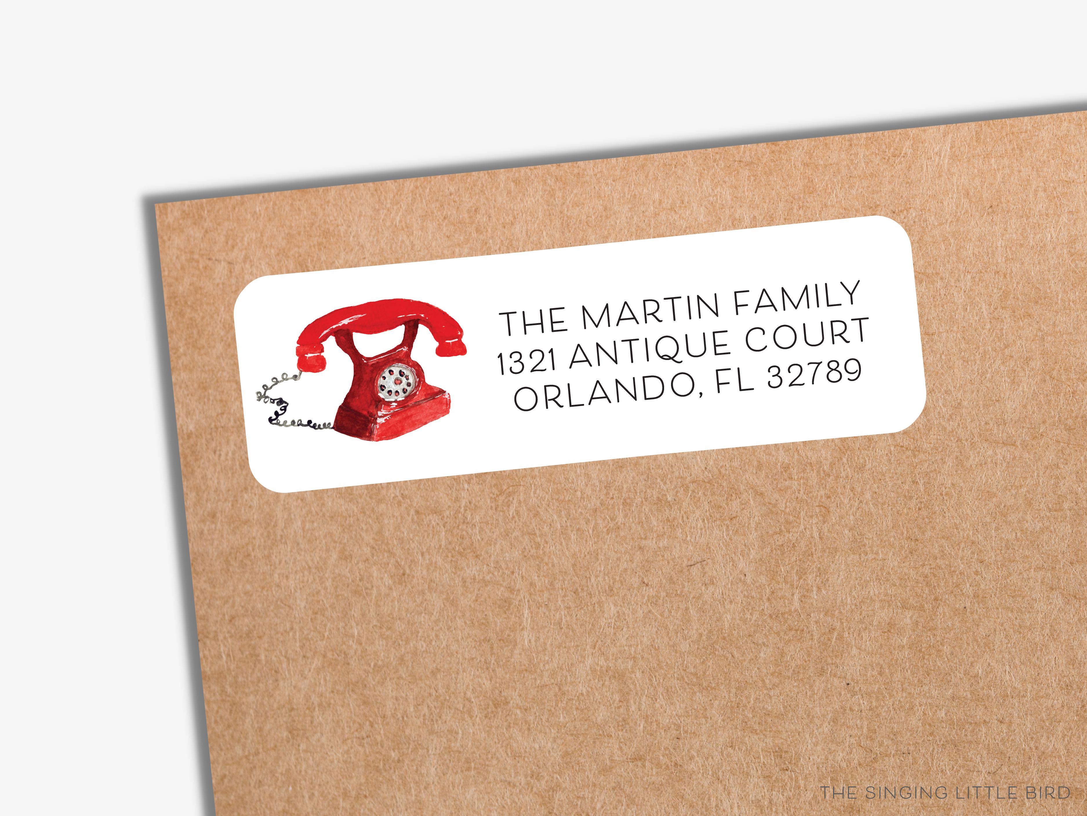 Vintage Phone Return Address Labels PRINTED | White Matte Address Envelope Labels | Personalized Label | Modern Mailing Stickers | Red Phone